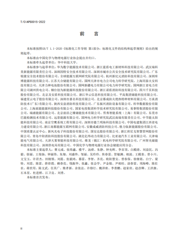 中國(guó)化學(xué)與物理電源行業(yè)協(xié)會(huì)批準(zhǔn)發(fā)布《預(yù)制艙式鋰離子電池儲(chǔ)能系統(tǒng)火災(zāi)抑制裝置測(cè)試方法》(T/CIAPS0015―2022)標(biāo)準(zhǔn),現(xiàn)予公告。