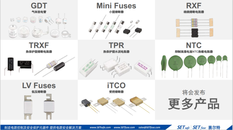 賽爾特SETsafe丨SETfuse的使命“設(shè)計(jì)、制造、銷售業(yè)界領(lǐng)先的電路控制及安全保護(hù)元器件、提供電路安全解決方案”。2000年成立于中國廈門。產(chǎn)品銷往40多個(gè)國家和地區(qū),與世界500強(qiáng)的部分企業(yè)有深遠(yuǎn)的合作。產(chǎn)品廣泛應(yīng)用于:通信、防雷器、電源、新能源、照明、家電、移動(dòng)設(shè)備、醫(yī)療等用電設(shè)備。