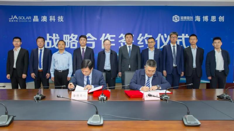 中國儲能網(wǎng)訊:3月9日, 晶澳太陽能科技股份有限公司與北京海博思創(chuàng)科技股份有限公司在晶澳北京總部舉行戰(zhàn)略合作簽約儀式。晶澳科技董事長靳保芳、輪值總裁楊愛青、海博思創(chuàng)董事長張劍輝、副總經(jīng)理錢昊等出席儀式并見簽,晶澳科技副總裁、智慧能源事業(yè)部總經(jīng)理臧文超,海博思創(chuàng)副總經(jīng)理高書清分別代表雙方簽約。