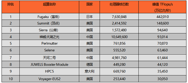 根據(jù) Top500.org 網(wǎng)站 2021 年 11 月發(fā)布的全球超級計(jì)算機(jī)五百強(qiáng)榜單,Top500中,中國以總量173 臺超級計(jì)算機(jī)蟬聯(lián)第一名,其次是美國的149 臺位列第二。雖然仍在榜首,但相對美國的數(shù)量優(yōu)勢已從 2020 年的領(lǐng)先 101 臺縮窄至僅僅領(lǐng)先 24 臺。榜單 Top100 中,中國超算數(shù)量由 3 臺減少至 2 臺,而美國、日本、德國分別有 34、14、12 臺。Top10 中美國占到一半,中國占 2 席,僅次于美國,日本、德國和意大利各站一席。從單核算力來看,中國上榜的超算中心速度領(lǐng)先,但幾乎比美國小了一個(gè)量級。