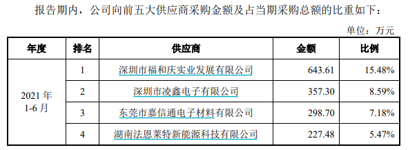 與同行業(yè)可比公司有所不同的是,華慧能源所生產(chǎn)的電容式鋰離子電池最大應(yīng)用領(lǐng)域?yàn)橹悄芡婢撸?018年-2020年及2021年1月-6月(以下簡(jiǎn)稱(chēng)報(bào)告期),公司前五大客戶(hù)有較多國(guó)內(nèi)外玩具廠商且名單相對(duì)穩(wěn)定,而前五大供應(yīng)商名單則變動(dòng)頻繁。