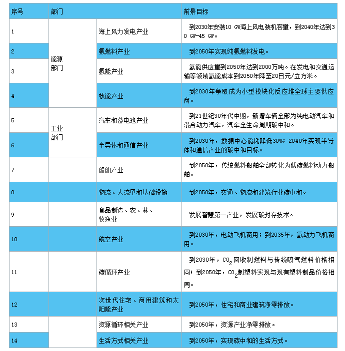 圖5 日本碳中和對14個(gè)產(chǎn)業(yè)的相關(guān)計(jì)劃。