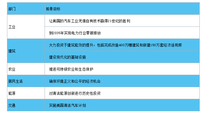 為支撐上述目標(biāo)實(shí)現(xiàn),美國配套了以下政策措施:在投資方面,投資二萬億美元建設(shè)現(xiàn)代化、可持續(xù)的基礎(chǔ)設(shè)施;在工業(yè)方面,推動(dòng)氫能等清潔能源創(chuàng)新和儲能革命;在交通運(yùn)輸方面,實(shí)施美國清潔汽車計(jì)劃,完善國內(nèi)汽車供應(yīng)鏈和汽車基礎(chǔ)設(shè)施,推進(jìn)公共部門的清潔交通建設(shè);在廢棄物管理方面,封堵廢棄的石油和天然氣井,回收廢棄的煤炭、硬巖等;在建筑方面,以凈零成本建造凈零能源建筑;在體制機(jī)制方面,進(jìn)一步建設(shè)包括通過數(shù)據(jù)篩選推動(dòng)氣候和經(jīng)濟(jì)正義、設(shè)立環(huán)境和氣候司法司。