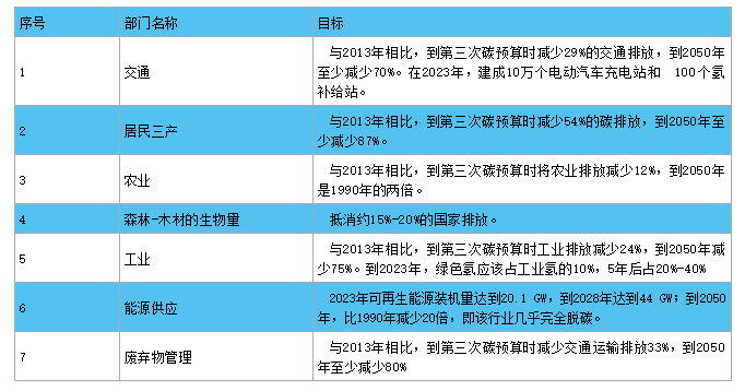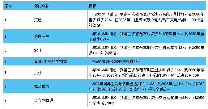 法國在《國家低碳戰(zhàn)略》中闡述了碳中和目標(biāo)實(shí)現(xiàn)路徑,總的來看,法國的碳中和實(shí)現(xiàn)路徑將歐盟所有部門分為七類,每個(gè)部門都單獨(dú)設(shè)立了具體的減排目標(biāo)。