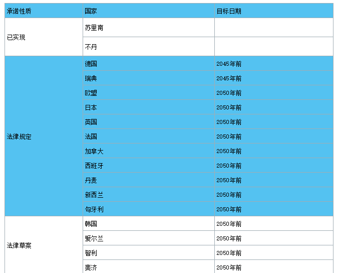 1.多個(gè)發(fā)達(dá)國家將碳中和目標(biāo)寫入法律