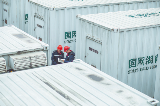 國(guó)網(wǎng)湖南綜合能源公司員工在長(zhǎng)沙榔梨儲(chǔ)能電站檢查儲(chǔ)能設(shè)備運(yùn)行情況。 柴黎 攝