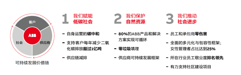作為全球電氣化和自動化的領(lǐng)先企業(yè),ABB 將創(chuàng)新融入基因。在中國,ABB 積極承擔企業(yè)社會責任,堅持數(shù)字化創(chuàng)新,在促進自身綠色發(fā)展的同時,幫助客戶、合作伙伴實現(xiàn)長期可持續(xù)發(fā)展。ABB 立足電力、工業(yè)、交通、建筑等多個行業(yè),提供智慧電力、智慧園區(qū)、智慧建筑、智慧交通、智慧城市等數(shù)字化解決方案,支持中國邁向碳中和宏偉目標。