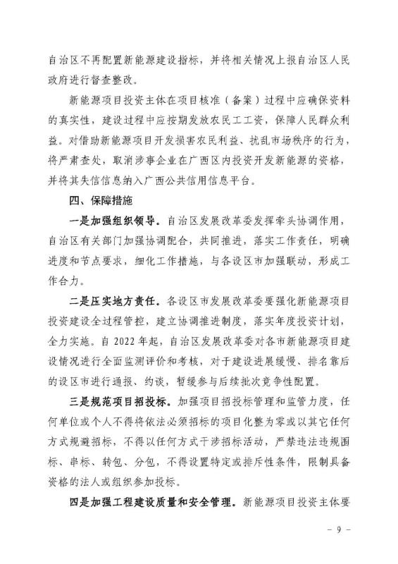 中國儲能網(wǎng)訊:3月10日,廣西壯族自治區(qū)發(fā)改委發(fā)布加快推進既有陸上風(fēng)電、光伏發(fā)電項目及配套設(shè)施建設(shè)方案。