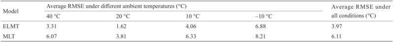 表7 不同環(huán)境溫度下模型預(yù)測的RMSE平均結(jié)果對比