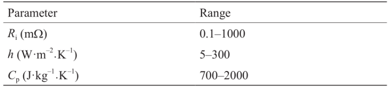 表2 集總參數(shù)熱模型參數(shù)取值范圍