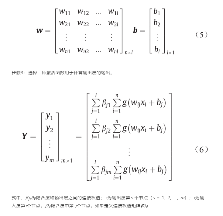 步驟2:隨機生成輸入層與隱含層之間的連接權(quán)值w 以及隱含層中的閾值b。權(quán)值矩陣w和閾值向量b可以表示為