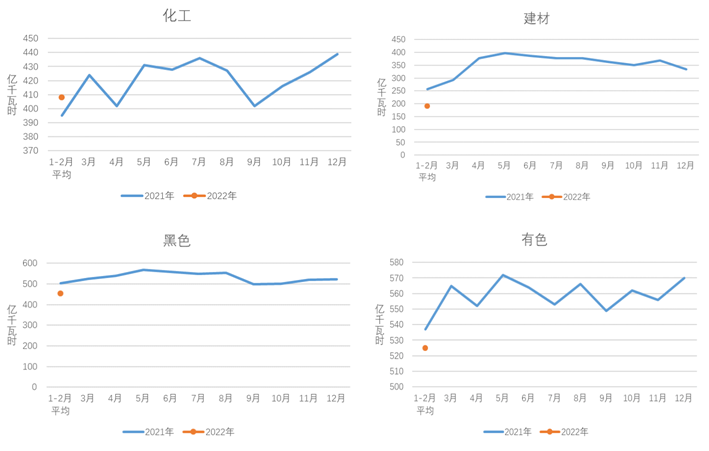 圖4 2021、2022年重點(diǎn)行業(yè)分月用電量情況