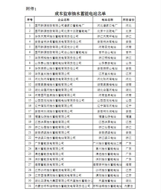 附件:1.成本監(jiān)審抽水蓄能電站名單