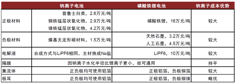 圖表28:鈉離子電池與鋰離子電池對(duì)比