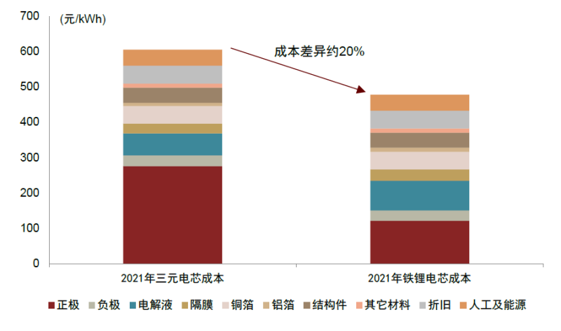 圖表25:2021年鐵鋰電芯成本較三元低20%