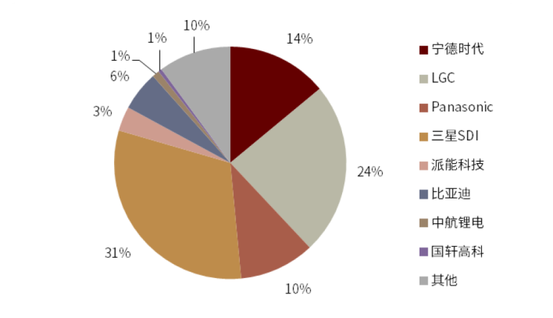 圖表23:2020年海外市場(chǎng)鋰離子裝機(jī)中三元份額達(dá)74%