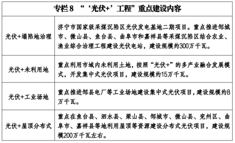 濟寧市能源發(fā)展“十四五”規(guī)劃要求:到2025年,建成、在建可再生能源發(fā)電裝機總量達(dá)到800萬千瓦左右。其中光伏7GW,風(fēng)電0.95GW,儲能0.5GW。