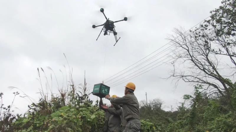 ▎臺(tái)風(fēng)過后利用運(yùn)輸無人機(jī)將搶修物資送至搶修現(xiàn)場(chǎng)|李攀璐 攝