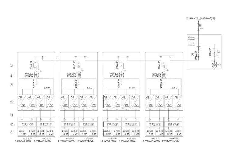 圖1 典型新能源配套儲(chǔ)能電站電氣主接線 10MW/20MWh