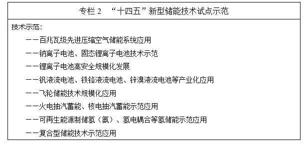 專欄2 “十四五”新型儲(chǔ)能技術(shù)試點(diǎn)示范