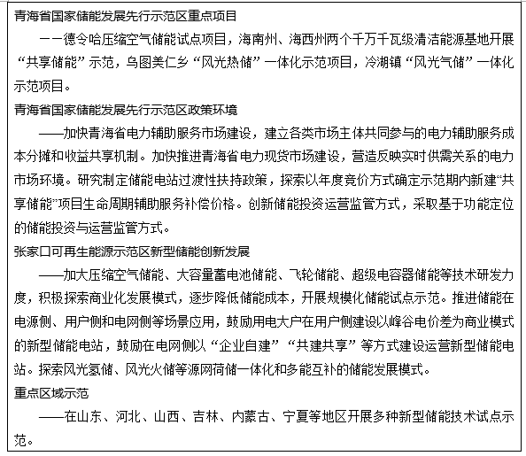 加快重點(diǎn)區(qū)域試點(diǎn)示范。積極開展區(qū)域性儲(chǔ)能示范區(qū)建設(shè),鼓勵(lì)各地因地制宜開展新型儲(chǔ)能政策機(jī)制改革試點(diǎn),推動(dòng)重點(diǎn)區(qū)域新型儲(chǔ)能試點(diǎn)示范項(xiàng)目建設(shè)。結(jié)合以沙漠、戈壁、荒漠地區(qū)為重點(diǎn)的大型風(fēng)電光伏基地建設(shè)開展新型儲(chǔ)能試點(diǎn)示范;加快青海省國家儲(chǔ)能發(fā)展先行示范區(qū)建設(shè);加強(qiáng)河北、廣東、福建、江蘇等地首批科技創(chuàng)新(儲(chǔ)能)試點(diǎn)示范項(xiàng)目跟蹤評(píng)估;統(tǒng)籌推進(jìn)張家口可再生能源示范區(qū)新型儲(chǔ)能發(fā)展。鼓勵(lì)各地在具備先進(jìn)技術(shù)、人才隊(duì)伍和資金支持的前提下,大膽先行先試,開展技術(shù)創(chuàng)新、模式創(chuàng)新以及體制機(jī)制創(chuàng)新試點(diǎn)示范和應(yīng)用。