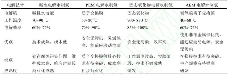 表1. 四種電解水制氫技術(shù)對比