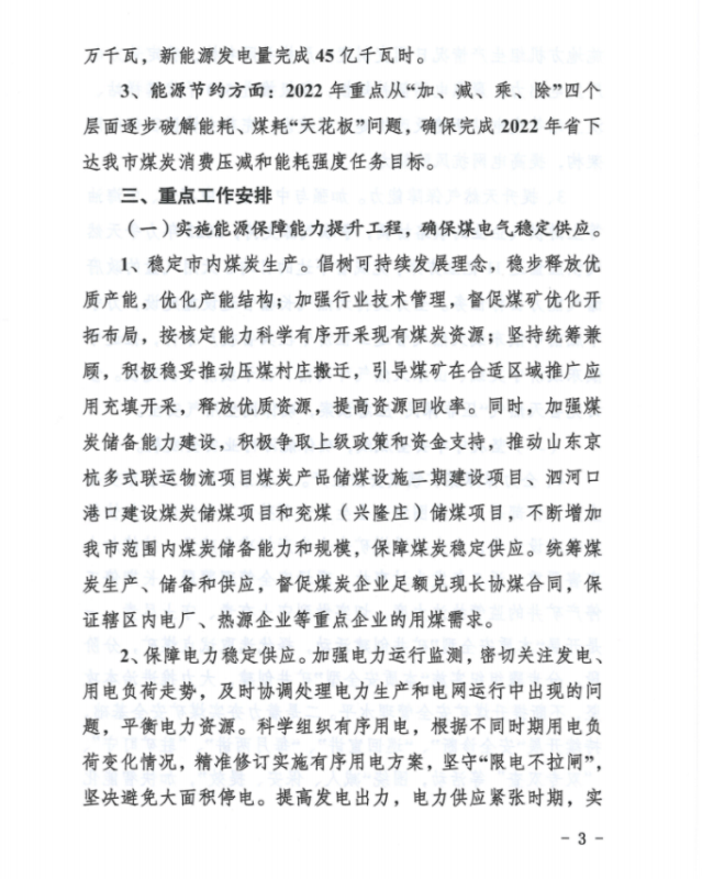 3、能源節(jié)約方面:2022年重點(diǎn)從“加、減、乘、除”四個(gè)層面逐步破解能耗、煤耗“天花板”問(wèn)題,確保完成2022年省下達(dá)濟(jì)寧市煤炭消費(fèi)壓減和能耗強(qiáng)度任務(wù)目標(biāo)。