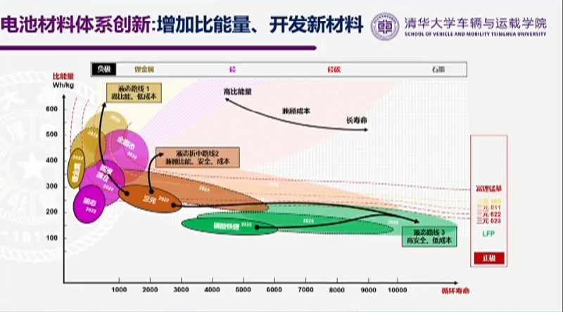 而面向未來(lái)電池相關(guān)技術(shù)發(fā)展趨勢(shì),歐陽(yáng)明高院士針對(duì)材料體系、技術(shù)路線(xiàn)以及系統(tǒng)結(jié)構(gòu)給出相應(yīng)預(yù)判。