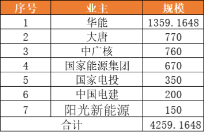 根據(jù)光伏們查詢(xún)業(yè)主發(fā)現(xiàn),華能以1359.1648MW位居業(yè)主開(kāi)發(fā)規(guī)模第一,大唐以770MW排名第二,中廣核760MW位列第三。此外,國(guó)家電投、中國(guó)電建、陽(yáng)光新能源也有一定規(guī)模的項(xiàng)目。