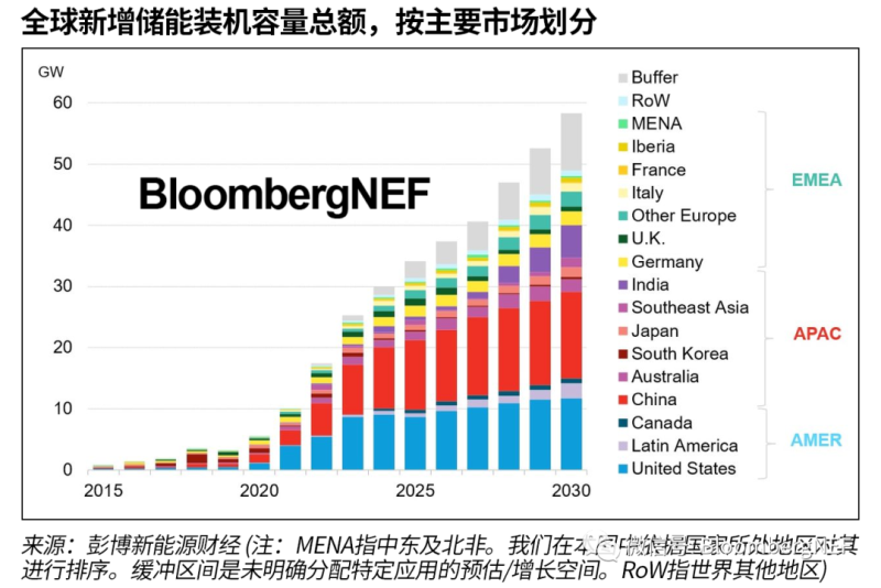 中美兩國(guó)到2030年占預(yù)期儲(chǔ)能裝機(jī)容量的份額