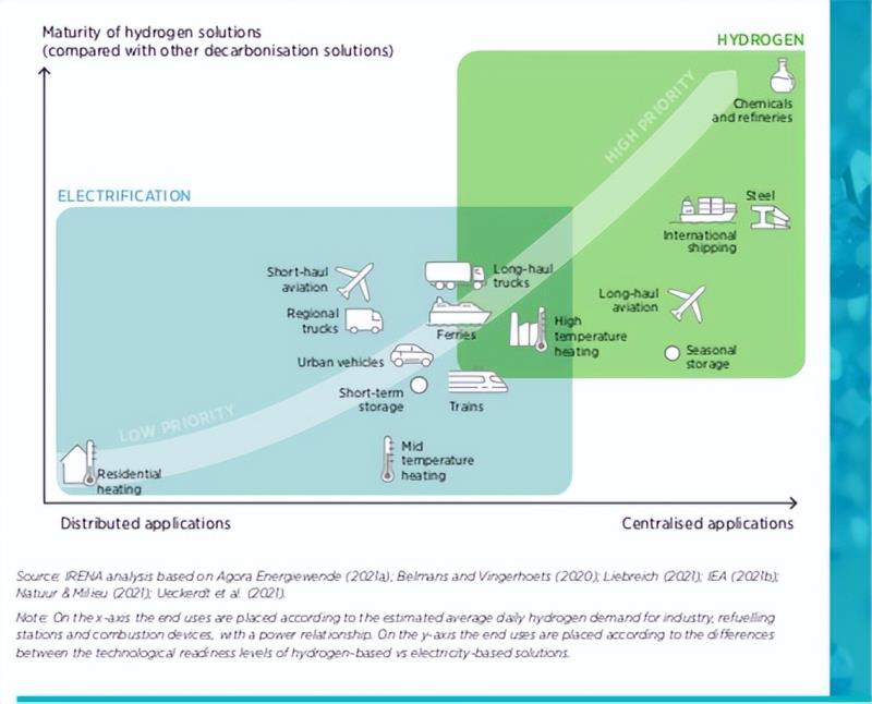 “從技術(shù)上講,氫可以用于許多不同的領(lǐng)域,然而,盡管氫具有巨大的潛力,但必須考慮它的生產(chǎn)、運(yùn)輸和轉(zhuǎn)化都需要能源,也需要大量投資。”《報(bào)告》強(qiáng)調(diào),氫的廣泛使用存在不符合“脫碳世界”的要求的可能,在這些要求中,能源的消費(fèi)和產(chǎn)能部署將必須仔細(xì)管理。尤其是,綠氫的生產(chǎn)需要可再生能源,而這些可再生能源也可以用于其他用能終端,這就要求在政策制定中確定“優(yōu)先事項(xiàng)”。