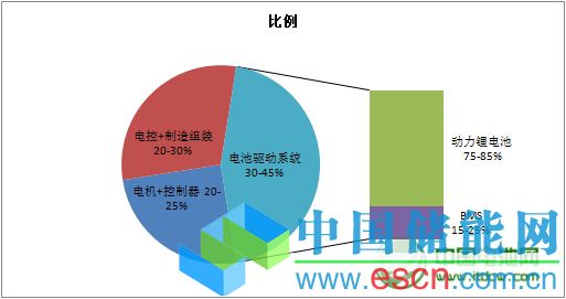 從新能源汽車的成本構(gòu)成看,電池驅(qū)動系統(tǒng)占據(jù)了新能源汽車成本的30-45%,而動力鋰電池又占據(jù)電池驅(qū)動系統(tǒng)約75-85%的成本構(gòu)成。