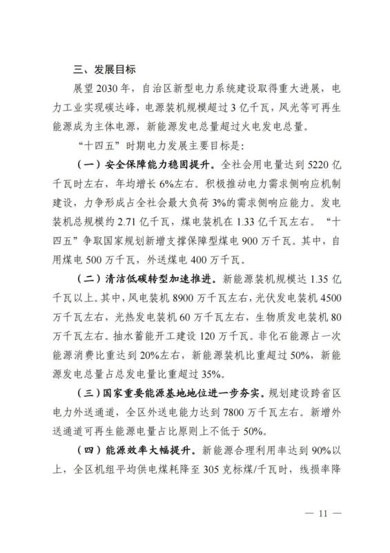 《通知》明確,“十四五”時(shí)期,新能源裝機(jī)規(guī)模達(dá)1.35億千瓦以上。其中,風(fēng)電裝機(jī)8900萬千瓦左右,光伏發(fā)電裝機(jī)4500萬千瓦左右,光熱發(fā)電裝機(jī)60萬千瓦左右,生物質(zhì)發(fā)電裝機(jī)80萬千瓦左右。抽水蓄能開工建設(shè)120萬千瓦。非化石能源占一次能源消費(fèi)比重達(dá)到20%左右,新能源裝機(jī)比重超過50%,新能源發(fā)電總量占總發(fā)電量比重超過35%。