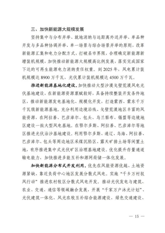 中國儲能網(wǎng)訊:3月29日,內(nèi)蒙古自治區(qū)能源局發(fā)布《關(guān)于自治區(qū)“十四五”電力發(fā)展規(guī)劃的通知》。到2025年,風(fēng)電累計(jì)裝機(jī)規(guī)模達(dá)8900萬千瓦,光伏累計(jì)裝機(jī)規(guī)模達(dá)4500萬千瓦。