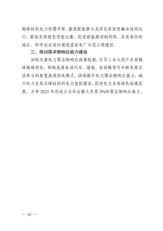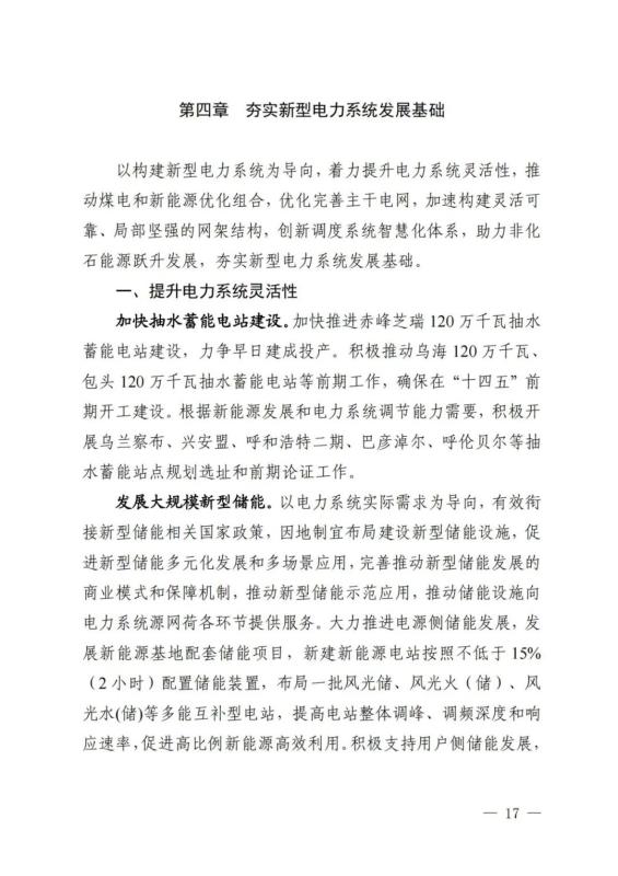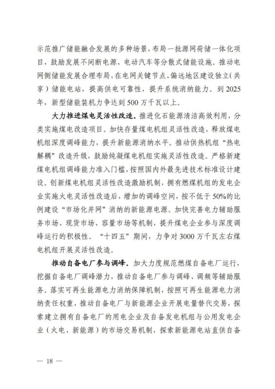 發(fā)展大規(guī)模新型儲能。電力系統(tǒng)源網(wǎng)荷各環(huán)節(jié)提供服務(wù)。大力推進(jìn)電源側(cè)儲能發(fā)展,發(fā)展新能源基地配套儲能項(xiàng)目,新建新能源電站按照不低于15%(2小時(shí))配置儲能裝置,布局一批風(fēng)光儲、風(fēng)光火(儲)、風(fēng)光水(儲)等多能互補(bǔ)型電站,提高電站整體調(diào)峰、調(diào)頻深度和響應(yīng)速率,促進(jìn)高比例新能源高效利用。到2025年,新型儲能裝機(jī)力爭達(dá)到500萬千瓦以上。