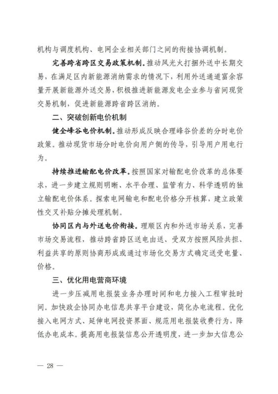 完善跨省跨區(qū)交易政策機(jī)制。推動風(fēng)光火打捆外送中長期交易,在滿足區(qū)內(nèi)新能源消納需求的情況下,利用外送通道富余容量開展新能源外送交易,積極推進(jìn)新能源發(fā)電企業(yè)參與省間現(xiàn)貨交易機(jī)制,促進(jìn)新能源跨省跨區(qū)消納。