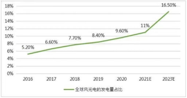 全球風(fēng)光電的發(fā)電量占比 數(shù)據(jù)來源:國融證券研究與戰(zhàn)略發(fā)展部