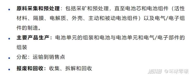 生命周期碳足跡的計算應基于特定工廠生產特定電池模型所使用的材料清單、能源和輔助材料。特別是電子元件(例如電池管理單元、安全單元)和正極材料必須被準確識別,因為它們可能成為電池碳足跡的主要來源。