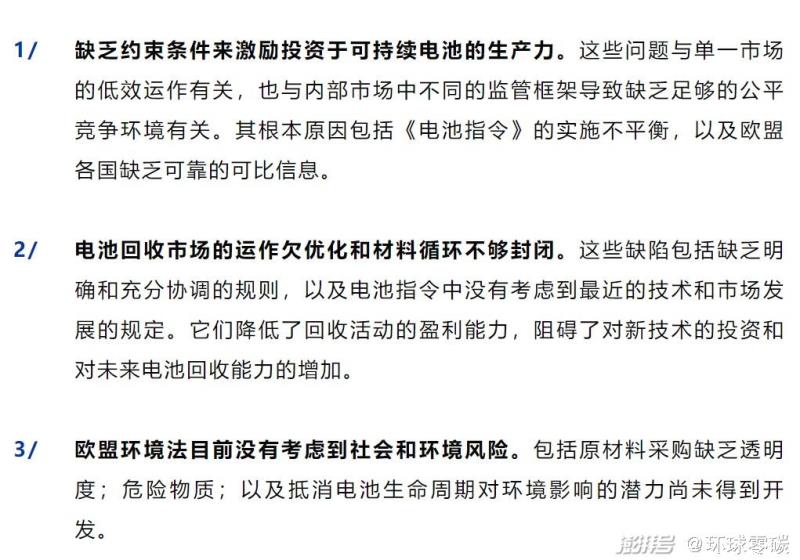 總結來說,歐盟出臺新電池法主要解決此前《電池指令》存在的三個問題: