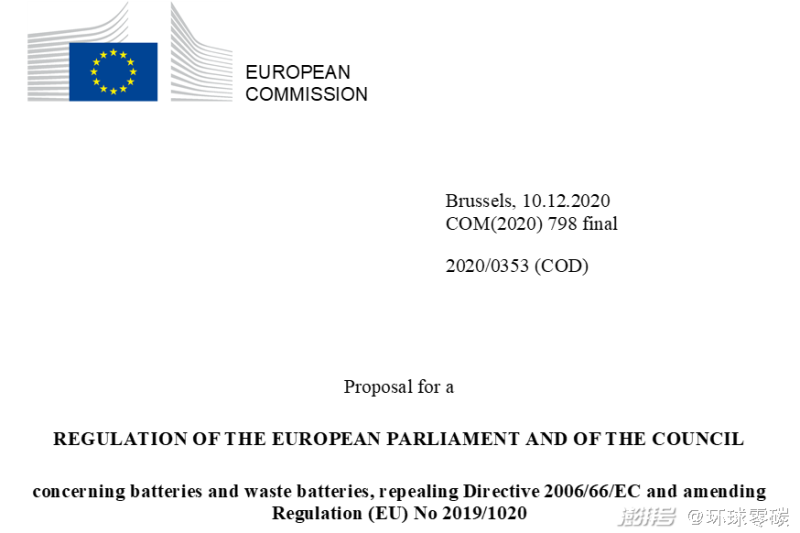 更關鍵的是,歐盟委員會于2020年12月10日提出了一項新電池法的提議草案。這項法規(guī)提議,擬對此前《電池指令》進一步地完善,實施方式由“指令”變?yōu)椤胺ㄒ?guī)”,以確保投放歐盟市場的電池在整個生命周期中都變得可持續(xù)且安全。