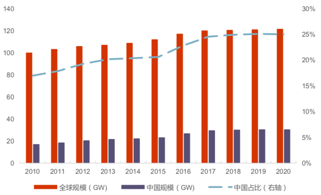 全球及中國(guó)抽水蓄能裝機(jī)規(guī)模增勢(shì),來(lái)源:國(guó)際可再生能源機(jī)構(gòu)、光大證券研究所