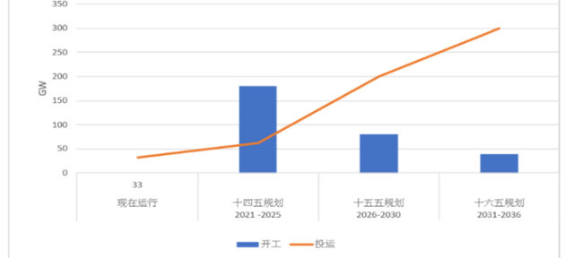 當(dāng)前至十六五期間蓄水儲(chǔ)能的開(kāi)工與運(yùn)行投放,來(lái)源:《抽水蓄能中長(zhǎng)期發(fā)展規(guī)劃》、華盛證券
