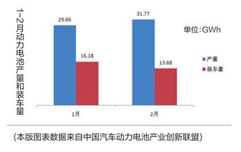 根據(jù)聯(lián)盟的統(tǒng)計數(shù)據(jù),1~2月,我國動力電池累計產(chǎn)量為61.4GWh,同比增長185.7%;累計裝車量為29.9GWh,同比增長109.7%。