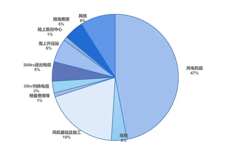 根據(jù)相關(guān)數(shù)據(jù)統(tǒng)計,2021年國內(nèi)海上風電典型造價約為 16000元/KW-18000 元/kW,其中,海上風電機組及塔筒的造價占比達到51%。