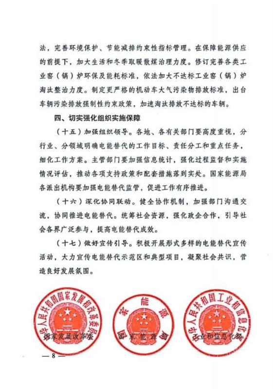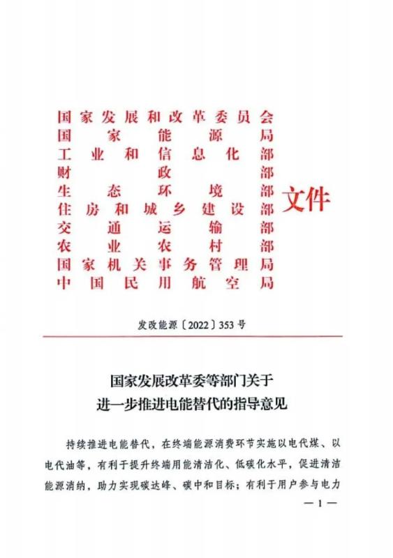 國(guó)家發(fā)改委等部門聯(lián)合印發(fā)《關(guān)于進(jìn)一步推薦電能替代的指導(dǎo)意見(jiàn)》
