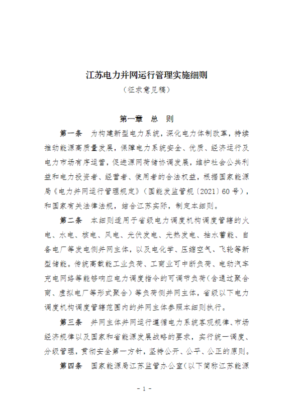 江蘇能源監(jiān)管辦關(guān)于《江蘇電力并網(wǎng)運(yùn)行管理實(shí)施細(xì)則(征求意見(jiàn)稿)》與《江蘇電力輔助服務(wù)管理實(shí)施細(xì)則(征求意見(jiàn)稿)》公開(kāi)征求意見(jiàn)的公告