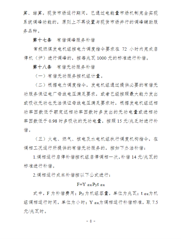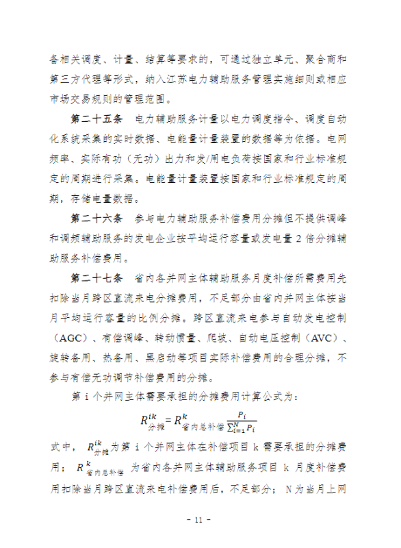江蘇電力輔助服務(wù)管理實(shí)施細(xì)則(征求意見(jiàn)稿)