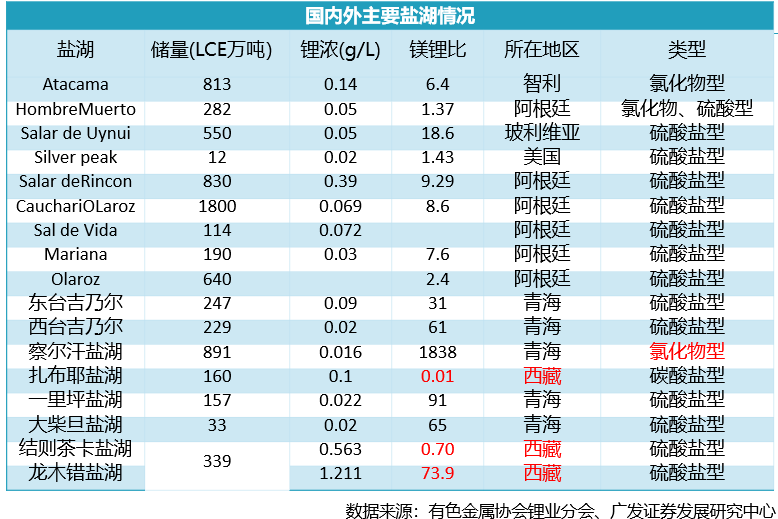 (2)青海鹽湖鋰濃度低、鎂鋰比高,稟賦差。