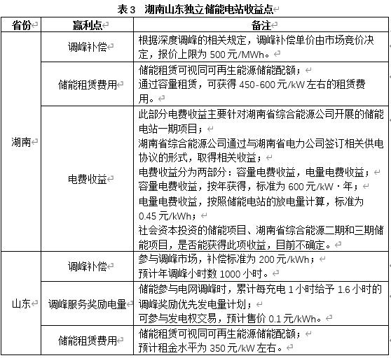在容量租賃+調(diào)峰補償?shù)纳虡I(yè)模式下,部分省份的共享儲能電站已經(jīng)具備一定的投資價值。湖南、山東是目前共享儲能電站盈利模式較為典型的省份,其收益模式如表3所示。
