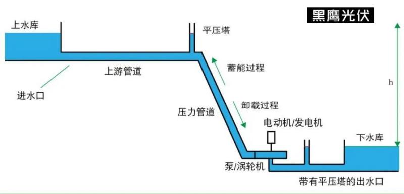 離河抽水蓄能項目通常包括一對人工水庫(每個面積為幾平方公里),彼此靠近(相隔幾公里),但海拔不同200 -1200 米的高度差),通過管道或隧相連接。在晴天(光伏 )/刮風(fēng)(風(fēng)電 )的日子里,下層水庫中的通過渦輪機被抽到山上的上層水庫來回收能量。